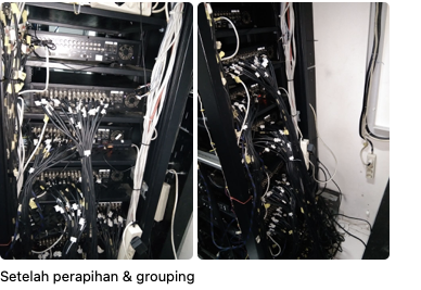 2. Instalasi Infrastruktur Jaringan: Penarikan kabel UTP Cat6 untuk mendukung transmisi data berkecepatan tinggi dan penggunaan PoE (Power over Ethernet) guna efisiensi daya perangkat.