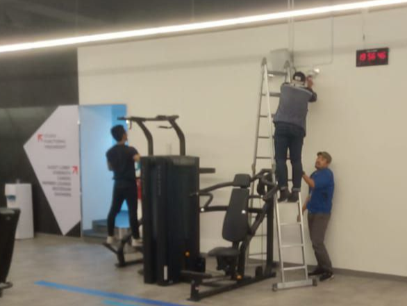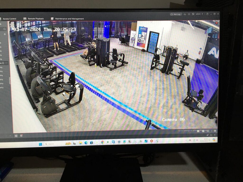 1. IP Camera Deployment: Pemasangan titik kamera di area strategis seperti pintu masuk (receptionist), area gym utama, loker, dan area parkir. Penggunaan IP Camera memastikan kualitas video resolusi tinggi (HD) dan transmisi data yang lebih aman melalui kabel LAN.